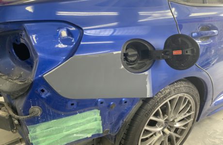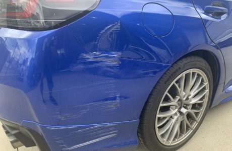 枚方市在住のお客様より、スバルインプレッサWRXの右リアフェンダー、リアバンパー修理でご来店いただきました!